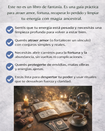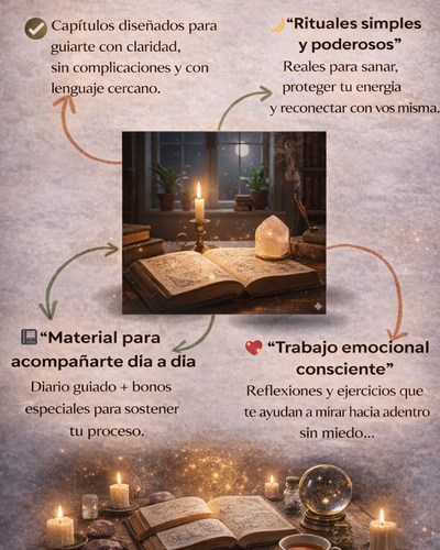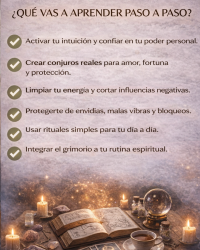 Todos los rituales y conjuros están explicados paso a paso, con lenguaje simple y claro.